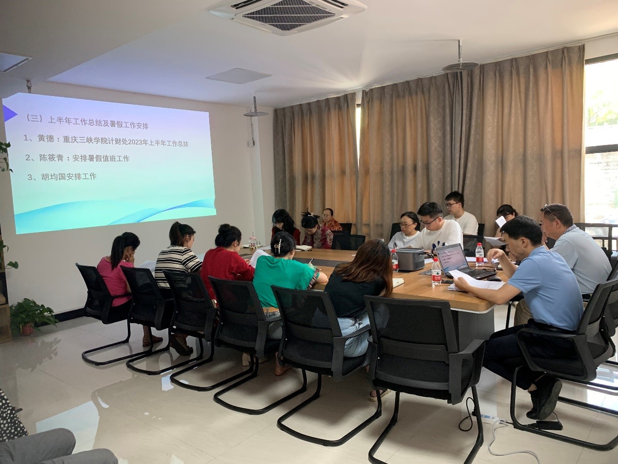 黄德汇报太阳成集团tyc122ccvip计财处2023年上半年工作总结;陈筱青安排暑假值班工作;胡均国安排了各科室暑期工作,强调职工按要求开展主题教育工作,积极推进师德师风建设,高度重视意识形态、安全稳定事宜工作,各科室积极履职,做好交接暑期值班等工作,为学校各项工作做好财务保障。