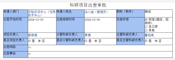 科研项目出差事前审批操作说明