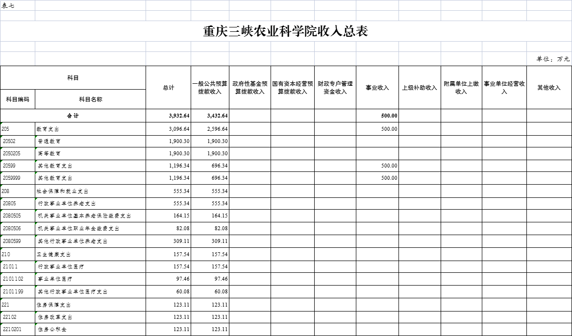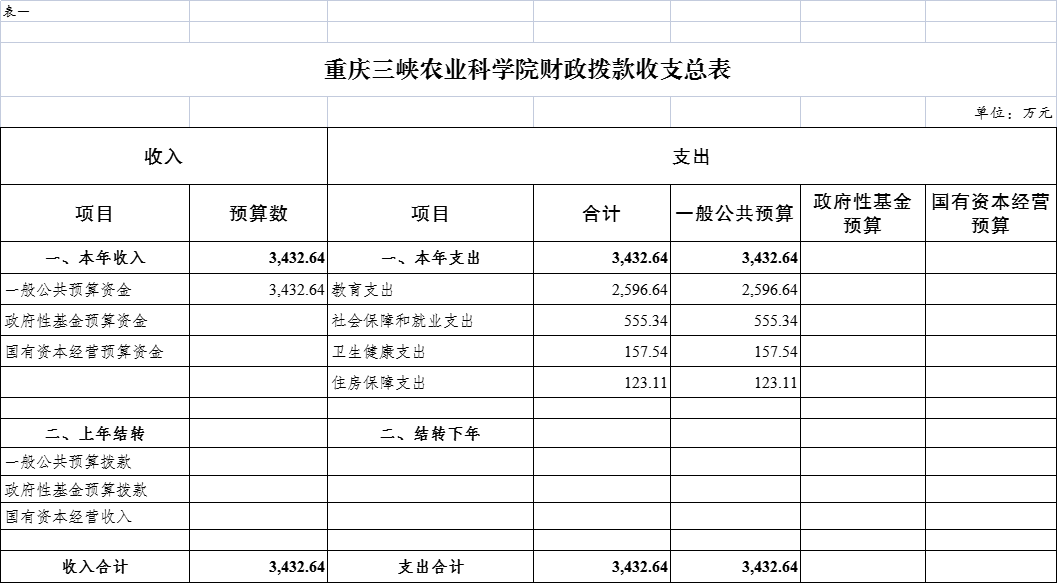 重庆三峡农业科学院政府性基金预算支出表 |