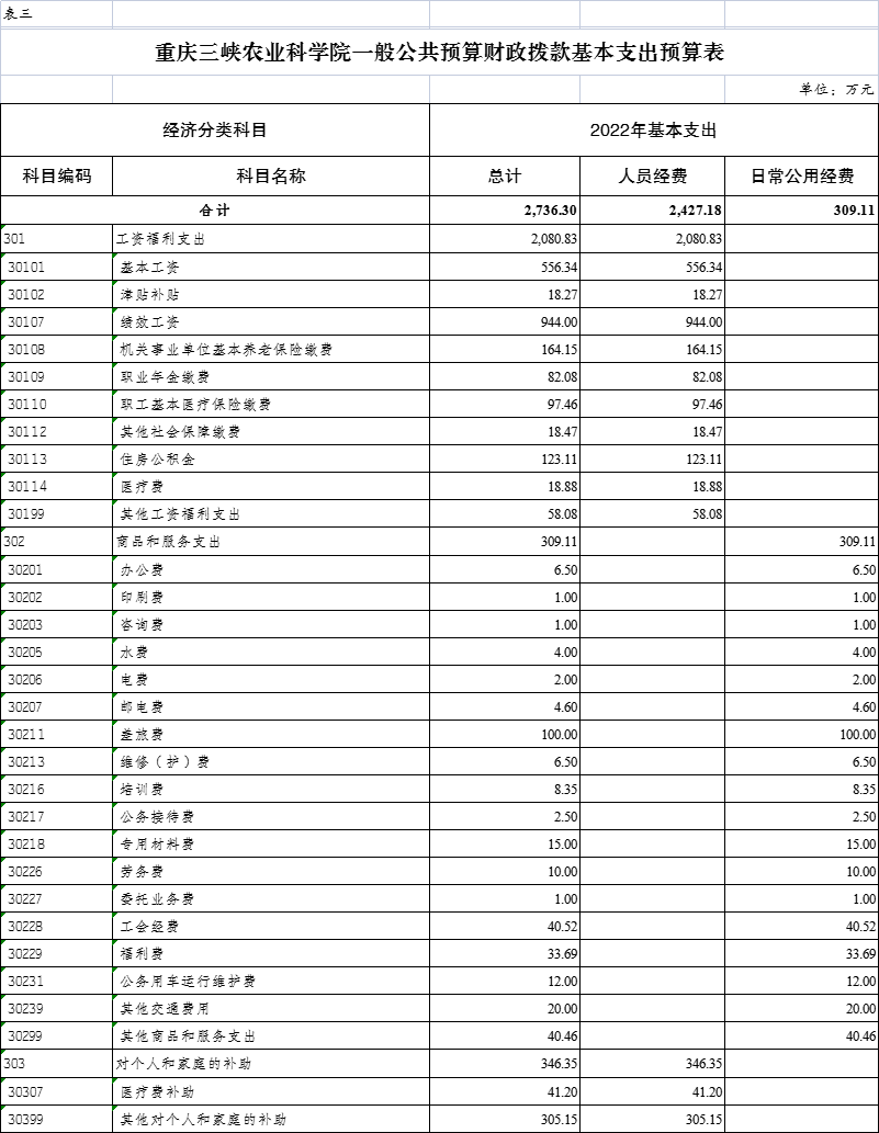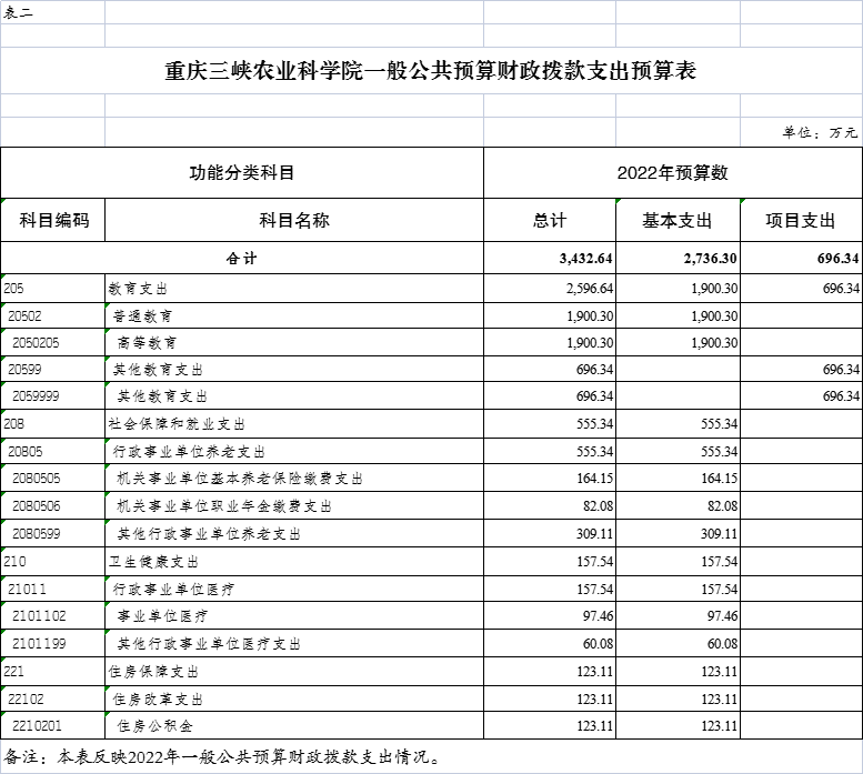 重庆三峡农业科学院2022年单位预算情况说明